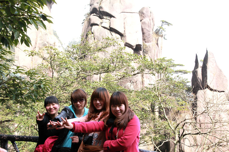 3月8日,公司組織全體女員工赴江西三清山旅游。到達目的地后,趁著導(dǎo)游購票的空隙,大家都迫不急待地在三清山大門牌坊前合照留念。