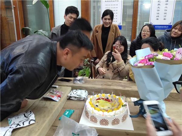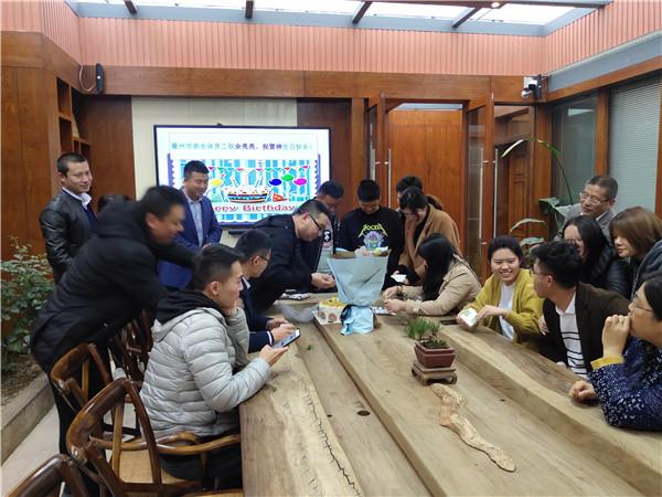 下午一點半,在公司工會主席蔡延祥主持下,公司全體員工開展了一場熱熱鬧鬧的慶生會,為余亮亮和祝雷神兩位同事送上了自己的祝福。