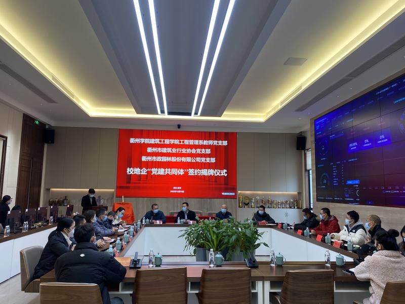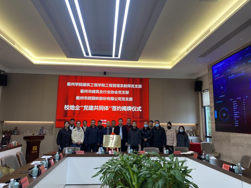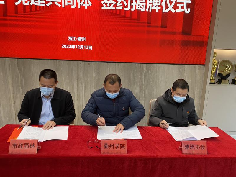 12月13日下午,中共衢州學院建筑工程學院工程管理系教師黨支部,中共衢州市建筑業(yè)行業(yè)協(xié)會黨支部,中共衢州市政園林股份有限公司黨支部三方聯(lián)合舉行了校地企“黨建共同體” 簽約揭牌儀式。