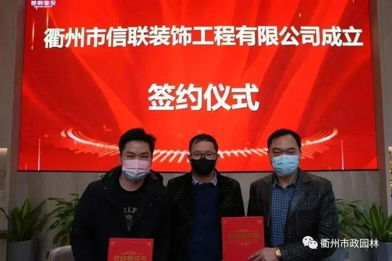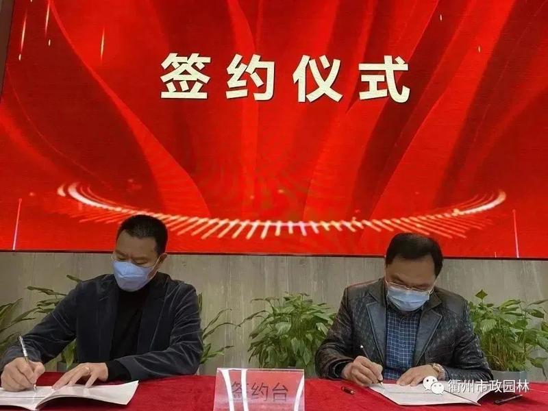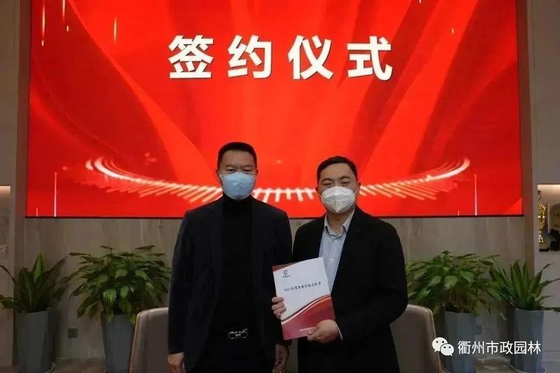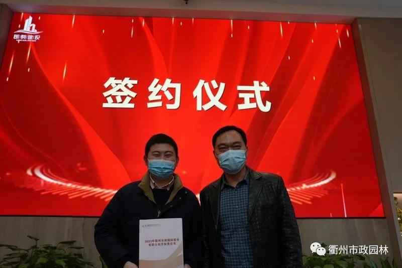 朗尊集團陳妙華總裁與衢州市政園林總經(jīng)理林玕簽訂2023年市政園林目標責任書