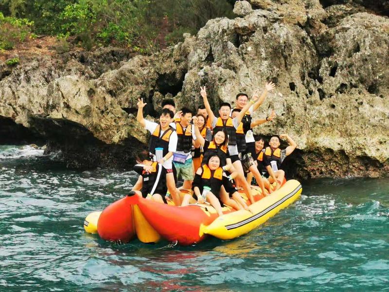 在領(lǐng)略了“全世界最美麗的白沙灘”后,大家又一同搭乘了當(dāng)?shù)鬲?dú)有的螃蟹船出海巡游,來了一趟“海上巡禮”。前往浮潛海域浮潛,海中珊瑚鋪滿海底,魚群種類繁多,這是另一個(gè)世界。棲息于旁的鱷魚島栩栩如生,讓大家不禁贊嘆上帝的造化。愛折騰的同事還嘗試了深潛、跳水、滑翔傘、水上摩托等等各種刺激的項(xiàng)目,偏愛休閑的同事則選擇在沙灘上散散步、做做spa、玩玩水,大家都根據(jù)自己的節(jié)奏享受假期。