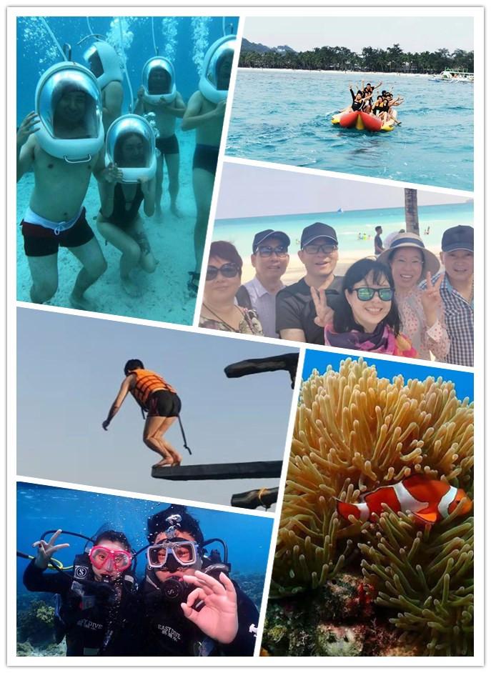 11月7日,前往長灘島的隊(duì)伍率先出發(fā),先坐大巴到達(dá)杭州機(jī)場(chǎng),然后直接飛向菲律賓卡里波機(jī)場(chǎng),下飛機(jī)后再換大巴前往碼頭坐輪渡上島,歷經(jīng)14個(gè)小時(shí)的長途跋涉終于踏上長灘島的土地。經(jīng)過短暫的休整后,大家開始了浪漫休閑的海島之旅,五天的時(shí)間里有安排集體活動(dòng),也有自由行,松緊相宜,怡然自得。大家一路游遍Dmall、圣母巖礁、星期五沙灘,感受了濃濃的異域風(fēng)情。